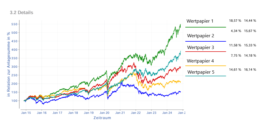 In den letzten 12 Monaten (Stand: November 2024) hat das Portfolio eine jährliche Wachstumsrate von 23,49 % bei einer Volatilität von 5,13 % erzielt.